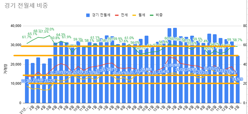 2-2. 경기 전월세 건수 및 비중
