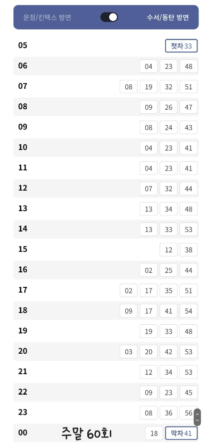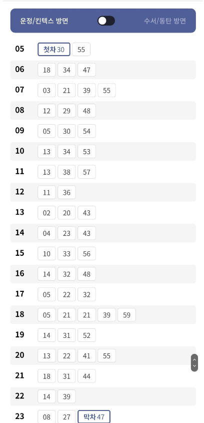 막차는 주중엔 23시 47분, 주말엔 00시 41분이네요