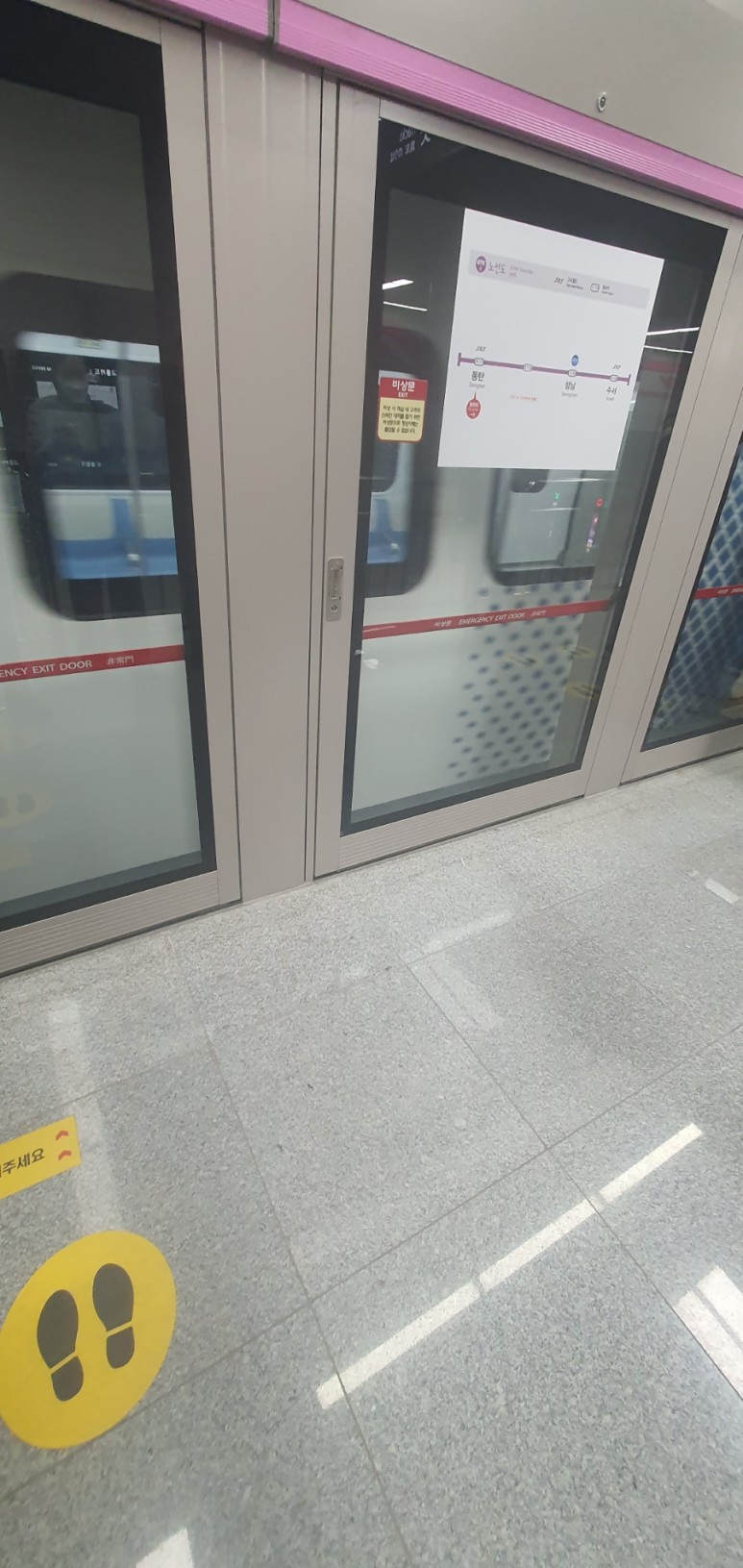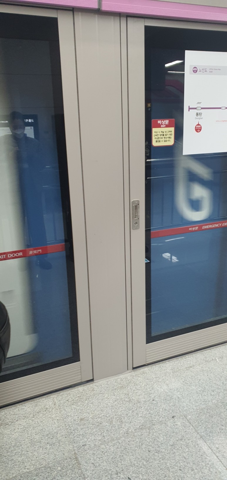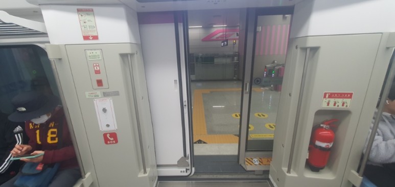 안전문은 서울의 전철과는 약간 다르게 SRT와 같은 형태를 가지고 있습니다