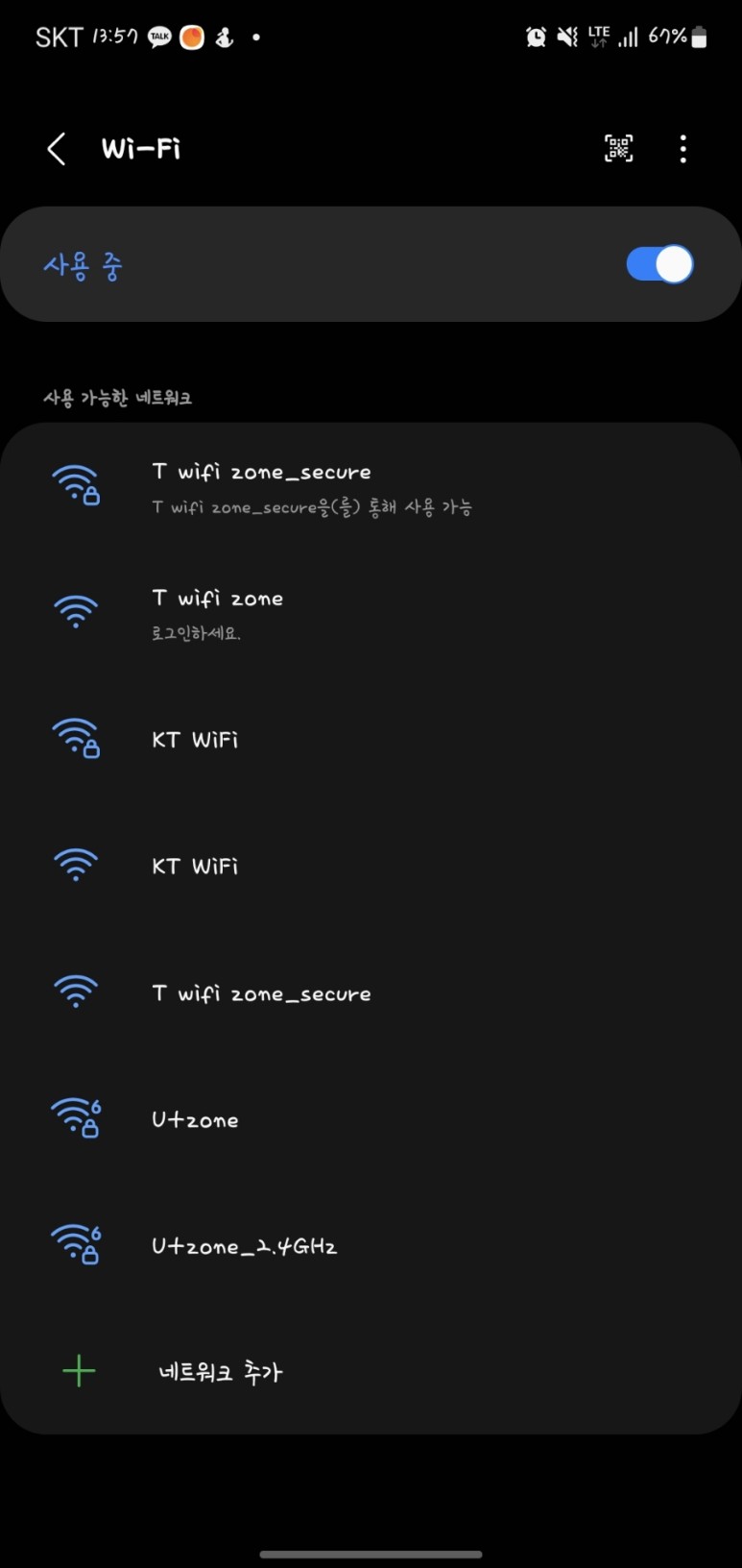 제 휴대폰을 봤더니, 다 있네요. 유플도 빵빵하게 떠 있습니다.