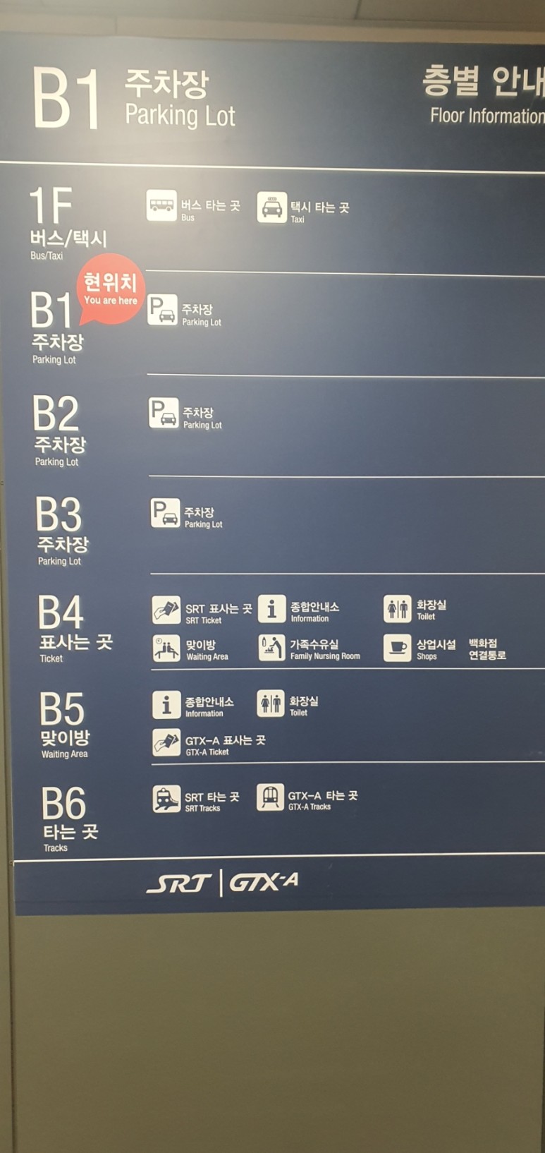 SRT는 지하 45미터이고, GTX는 40미터라는 말을 들었어서 지하 5층이 출발이려나? 했는데