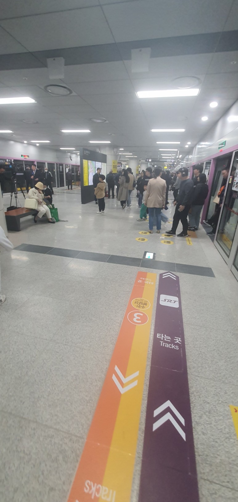 제가 서 있던 곳이 이렇게 뒤쪽으로 SRT와 연결된곳이라 좀 좁아서 사람들 지나다니라고 앞사람과 떨어져 있었거든요.