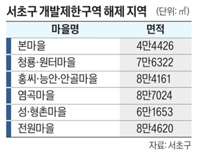 - 서초구 본마을. 염곡마을 등 6곳, 1종 전용 --> 1종일반 종상향 추진