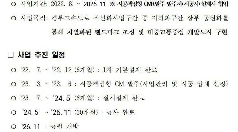 경부고속도로 직선화 사업과 함께 진행되고 있는 상부 공원 사업입니다.