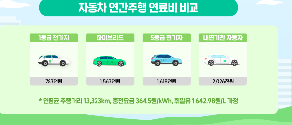 음.. 그리고 내연기관 자동차와 5등급 전기차는 연료비 차이가 별로 없군요?