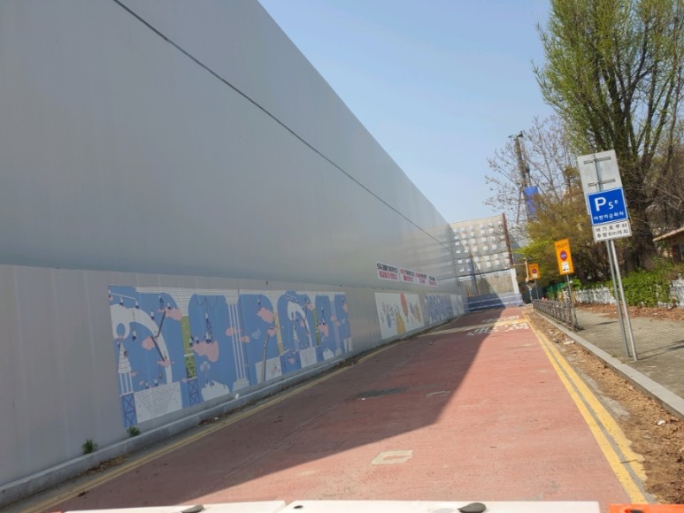벽으로 둘러쳐져 있는 공사 현장..