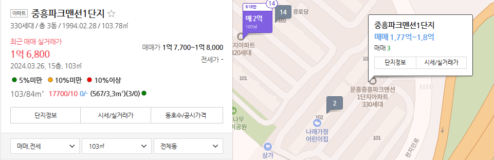제가 알고 있는 나름 소규모 단지인 광주 북구의 중흥파크맨션을 검색해 봤습니다.