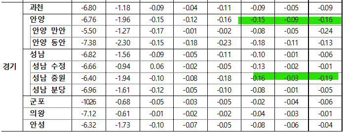다만 안양과 성남은 생각보다 하락의 폭이 좀 깊은게 아닌가 생각이 듭니다.