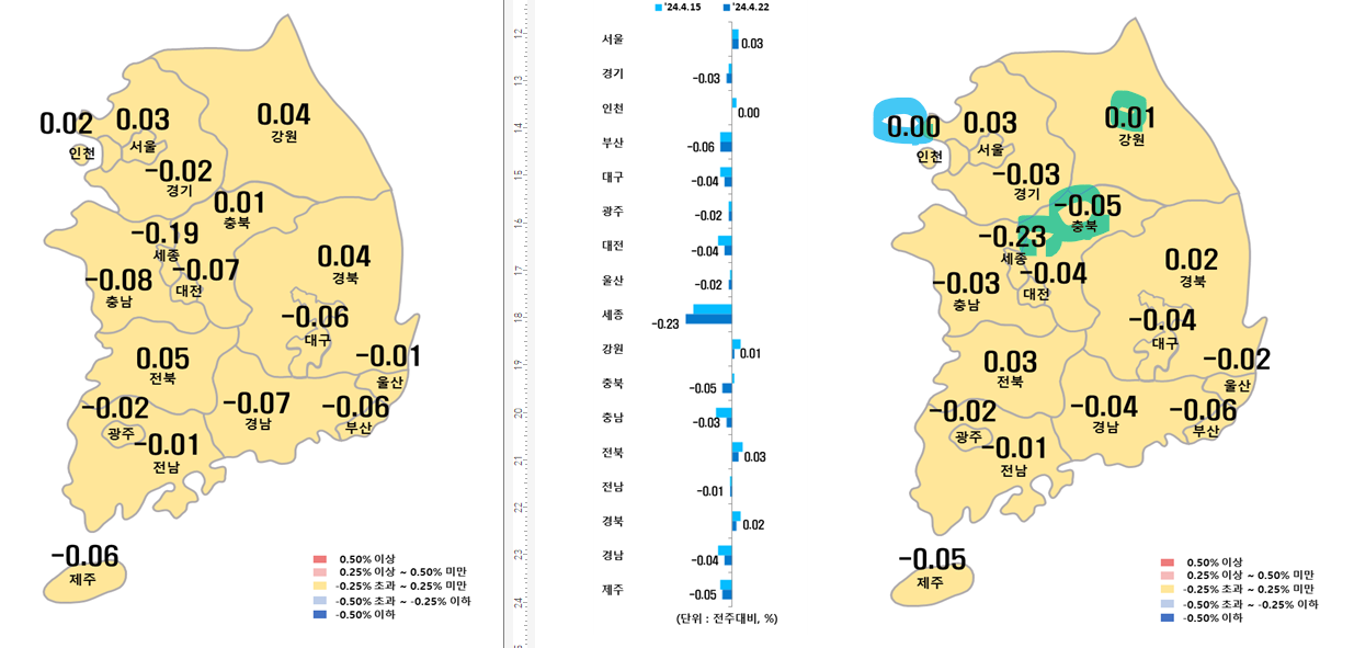 4월 4주차 시도별 아파트 지난주 대비 매매가격지수 변동율