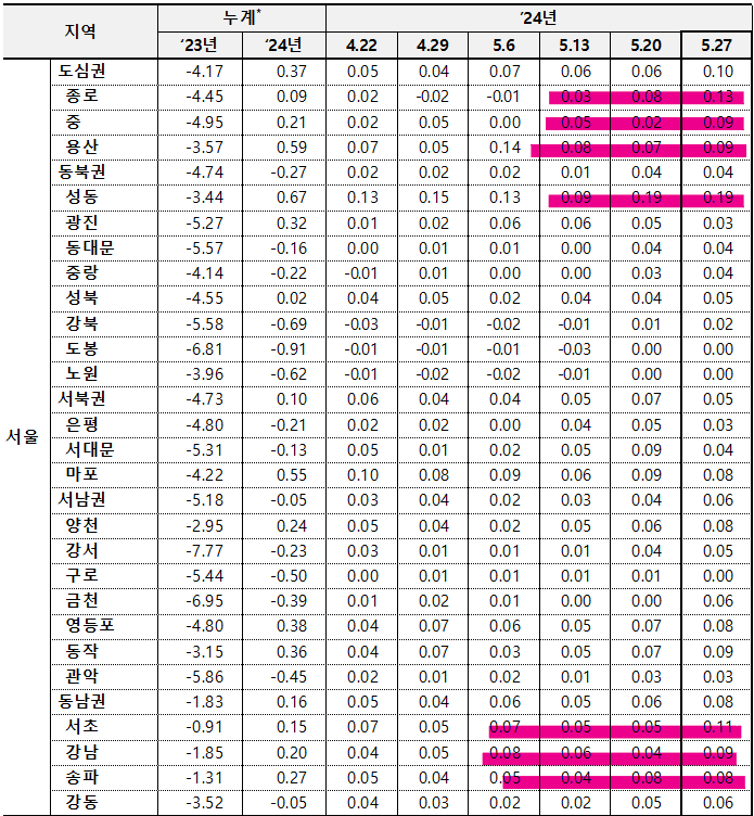 | [금요루틴] 5월 2주차 매매전세 동향 (한국부동산원기준) (0) | 2024.05.17 |