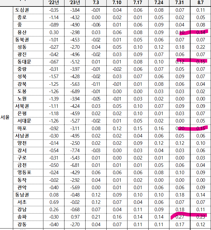 | [금요루틴] 8월 3주 한국부동산원 주간 아파트가격 동향 (0) | 2023.08.25 |