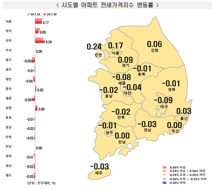 7월 4주차 시도별 아파트 지난주 대비 전세가격지수 변동률