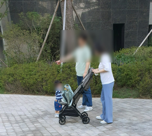 아이들은 버버리 입고 있고 -_-;; 단지에서 산책 나온 자매인듯한 아가씨...두분이. 정말 단아하게 차려입고 나오셨더라구요