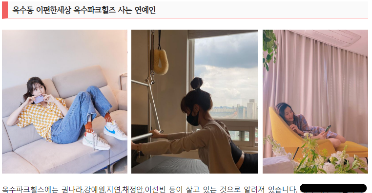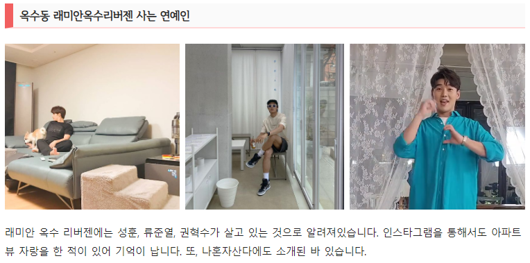 이쯤에서, 래미안 옥수 리버젠 살고 있다는 연예인들 한번 소환!!