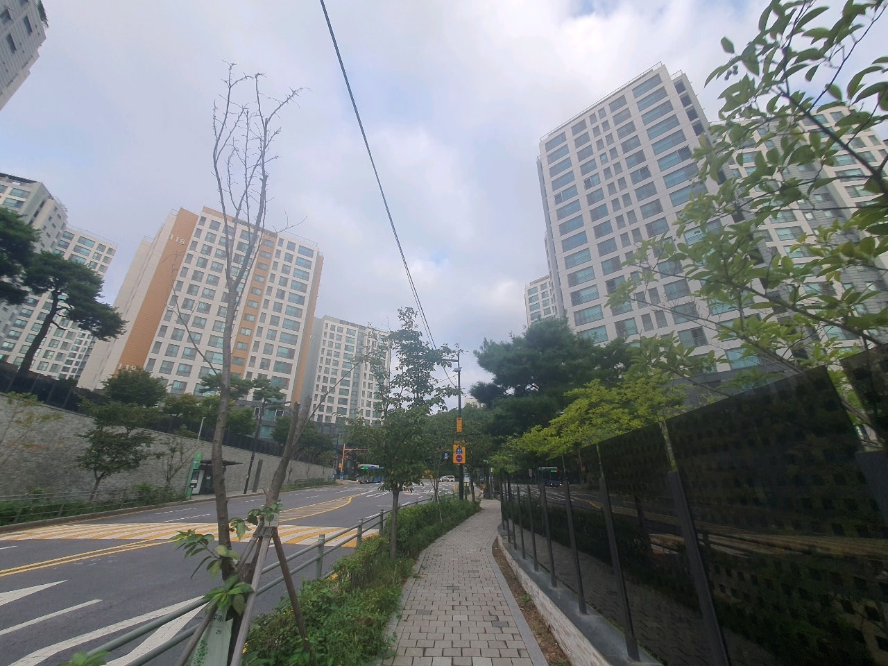 이 아파트는 도로를 사이에 두고 같은 단지로 엮여 있습니다.