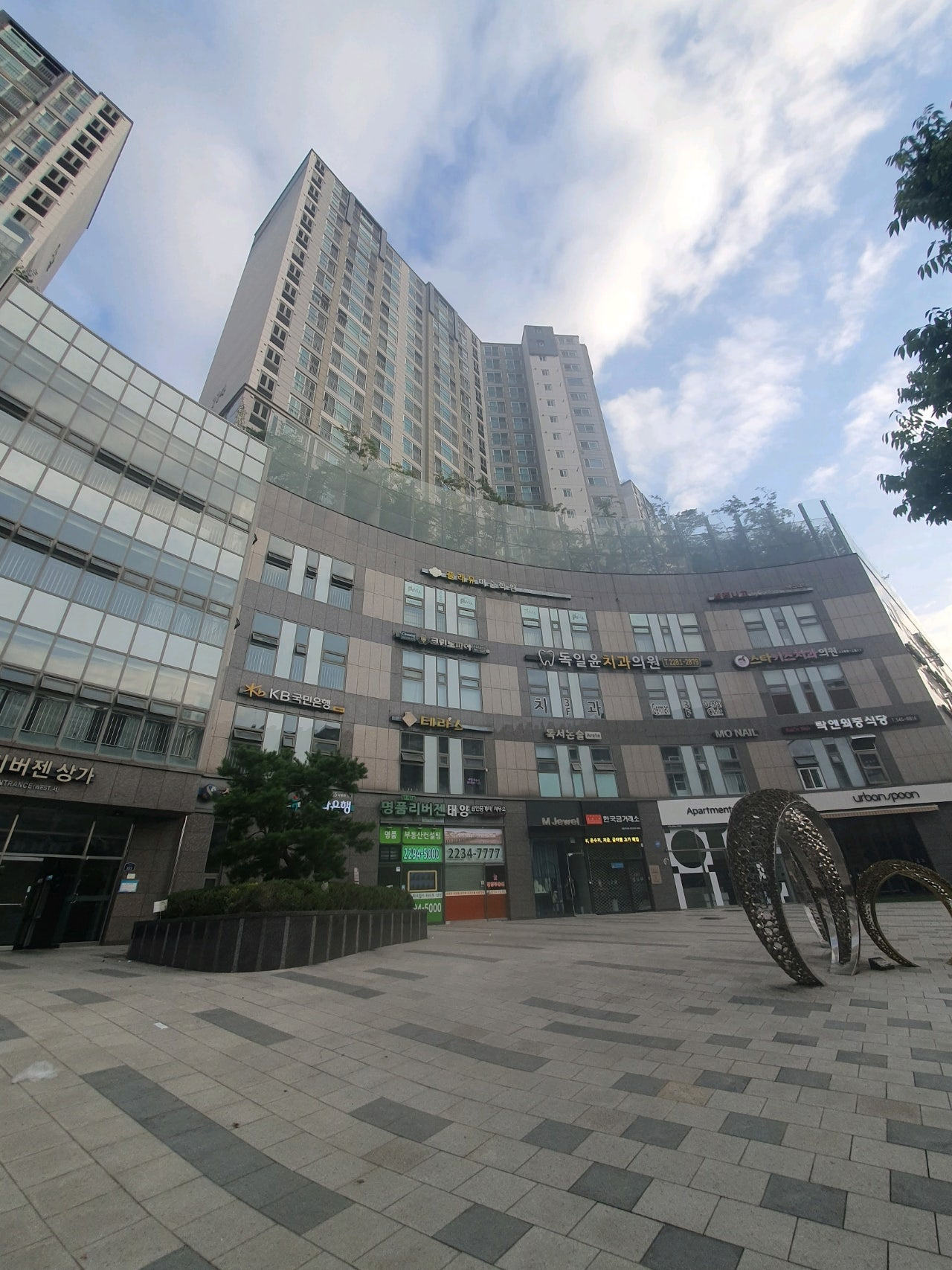 아파트 정문의 상가동도 이런 위용을 자랑하고 있습니다.