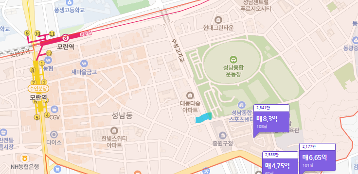원래는 수정구만 보려 했는데, 8호선을 따라 왼쪽 오른쪽으로 수정구와 중원구를 같이 봤습니다.