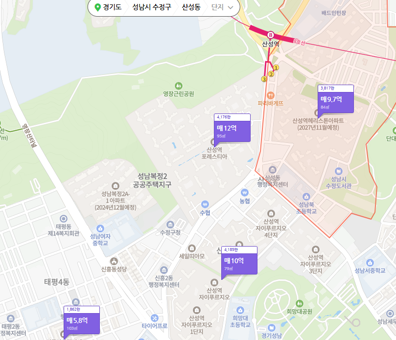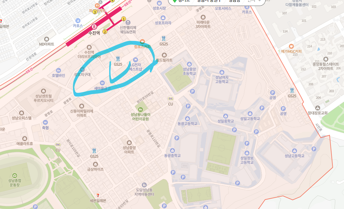 원래는 수정구만 보려 했는데, 8호선을 따라 왼쪽 오른쪽으로 수정구와 중원구를 같이 봤습니다.