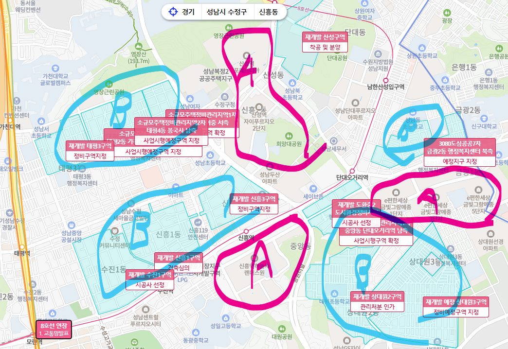 분명히 호재 일텐데요.. 그렇다면, 어떻게 변화가 있을지, 재개발 이 지속적으로 진행되고 있는 수정구와의 연계가 궁금했습니다)