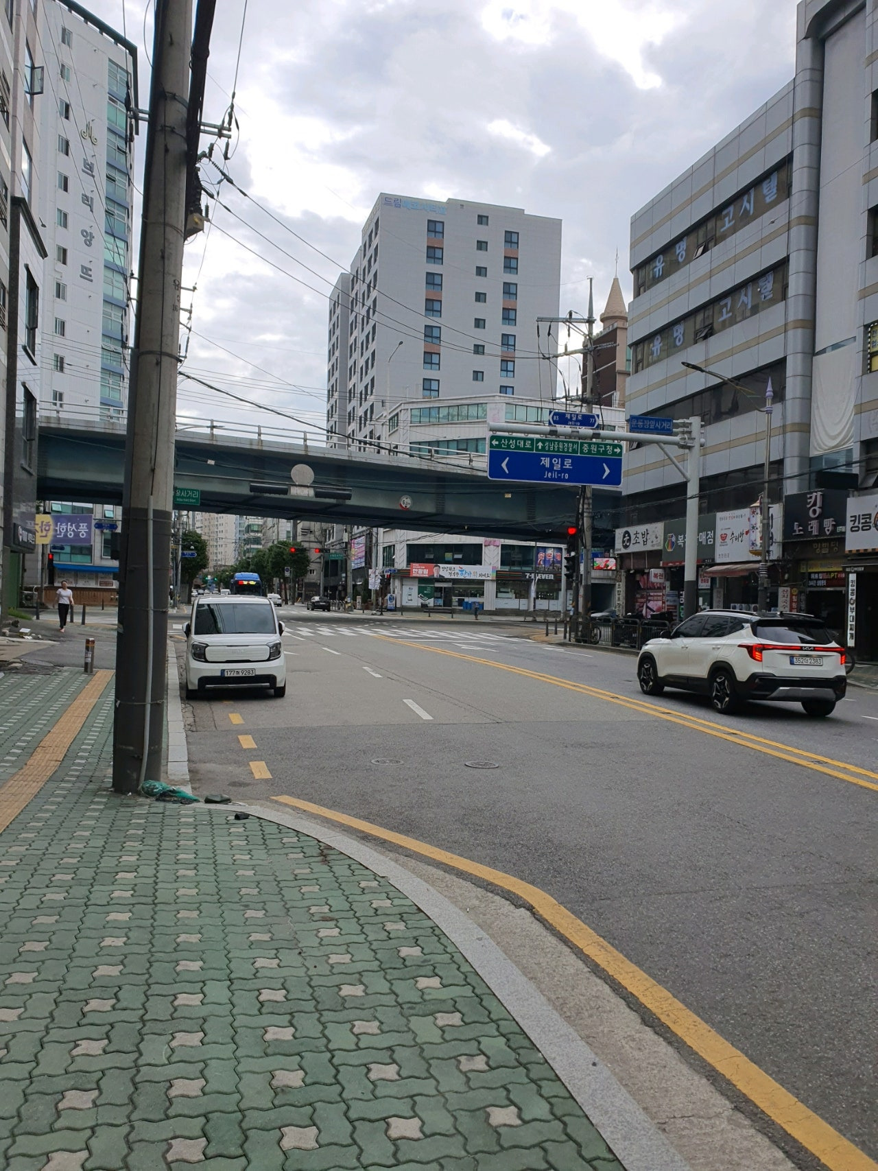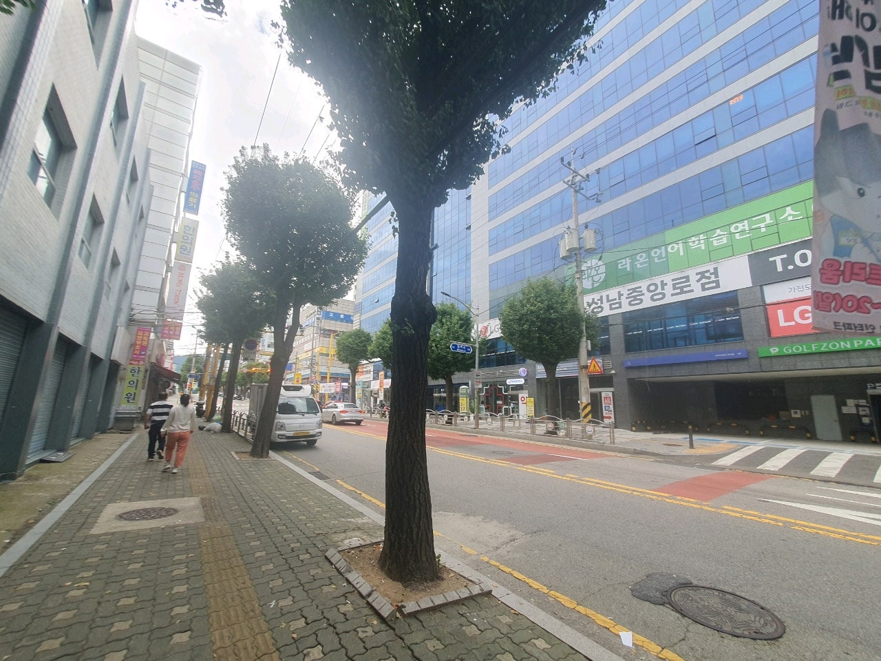 중원구청 팻말이 보이며, 약간 상권이 차분해 집니다.