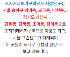얼마전에 송파구와 하남 감일지구 쪽에 토허지역이 추가로 지정됐다는 내용이 있었습니다.