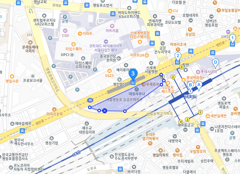 타임스스퀘어 쪽에서 영등포역쪽으로 가는데,