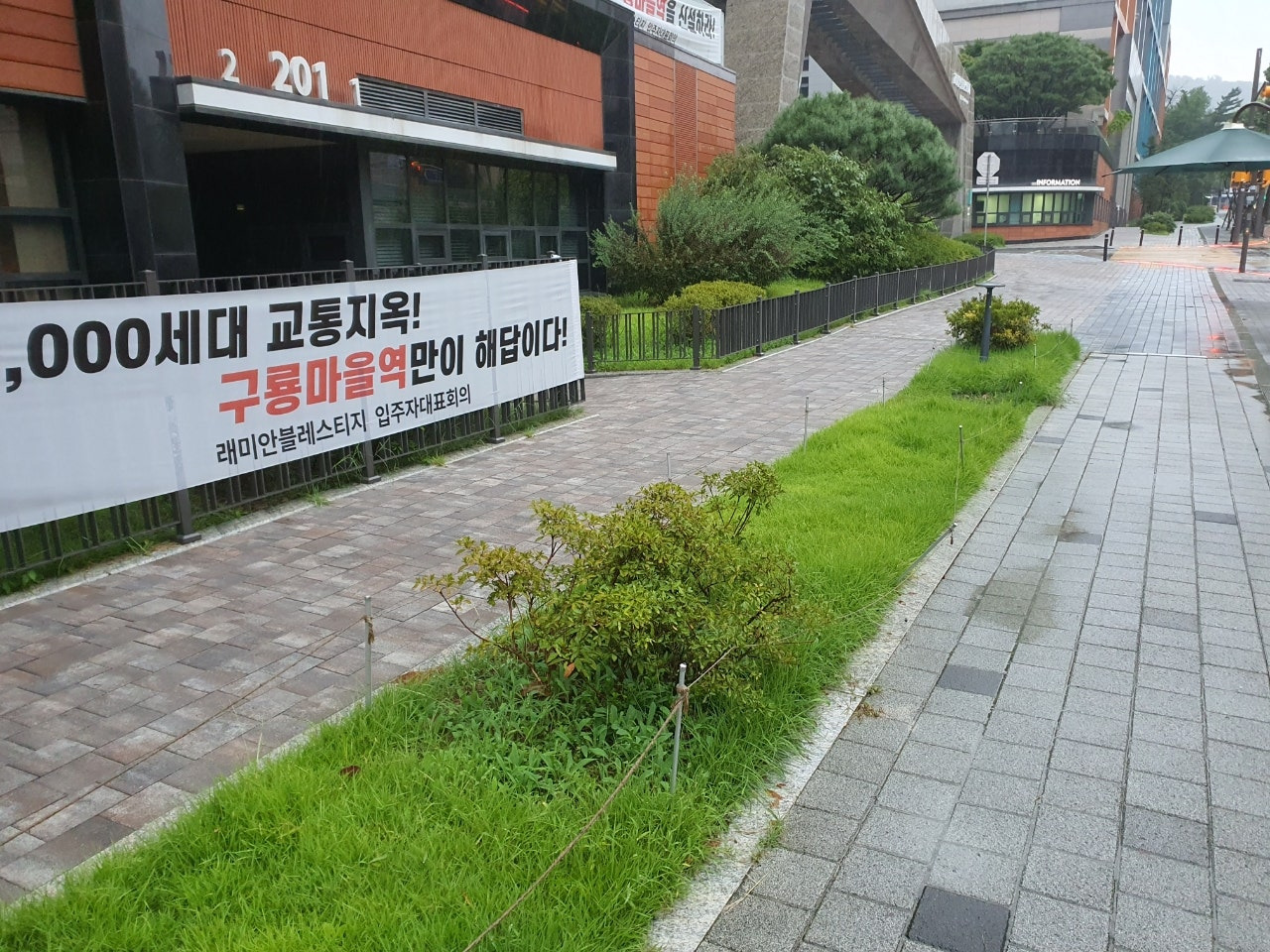 2만세대 교통지옥이니가, 구룡마을역을 세워달라는 플랜카드...
