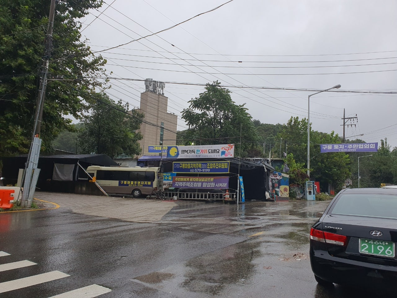 지금은 도선여객 건물은 왼쪽으로 새 건물을 지었고, 여기는 구룡마을 지주택 추진위가 진을 치고 있네요.