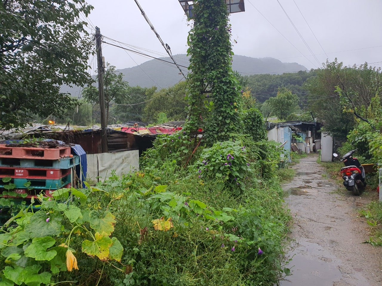 마을 입구부터 재활용 , 폐지, 고철 을 모은 고물상이 보입니다.