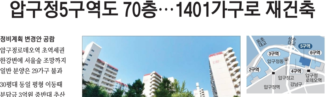 •  압구정 5구역도 70층... 1401가구로 재건축