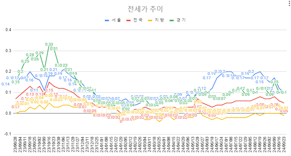 [9월 4주차 금요루틴] 한국부동산원 기준 매매전세 동향