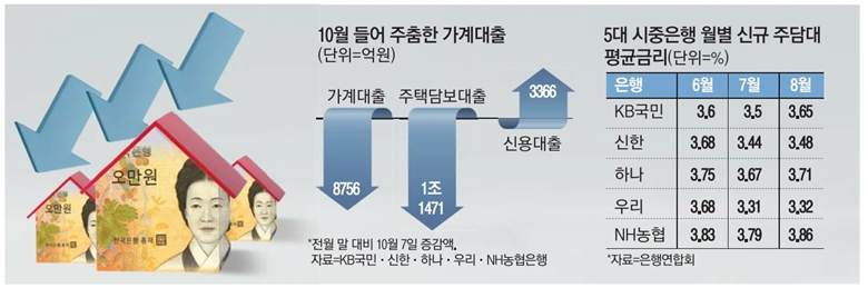 - 돈줄 죄기 3개월만에 10월 가계 대출 줄어
