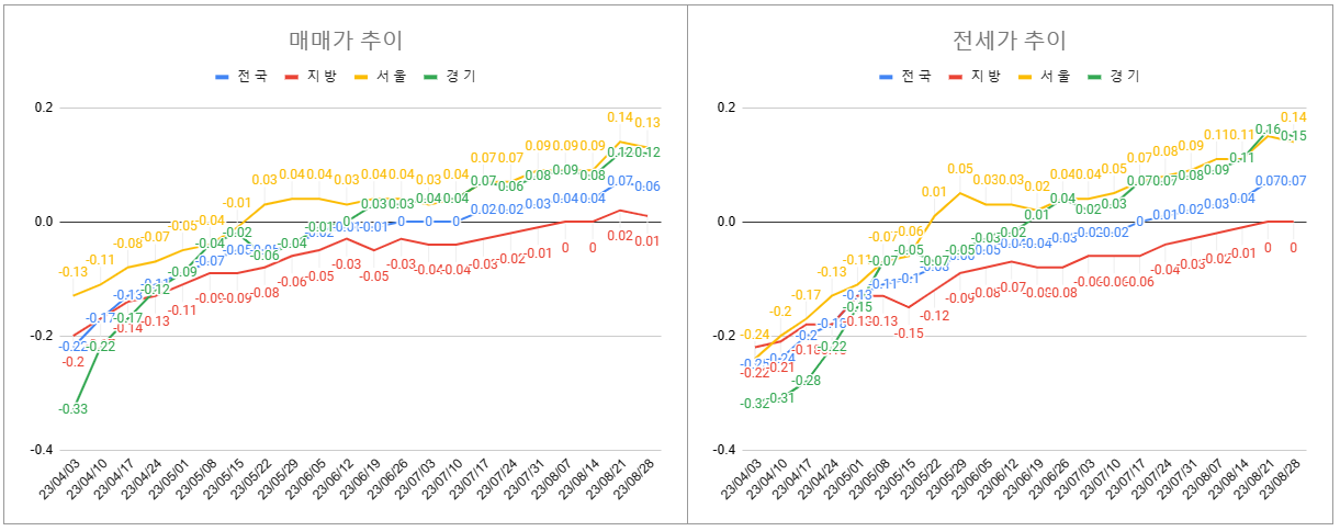 | [금요루틴] 9월 2주차 주간 아파트 매매전세동향 [한국부동산원 기준] (0) | 2023.09.15 |