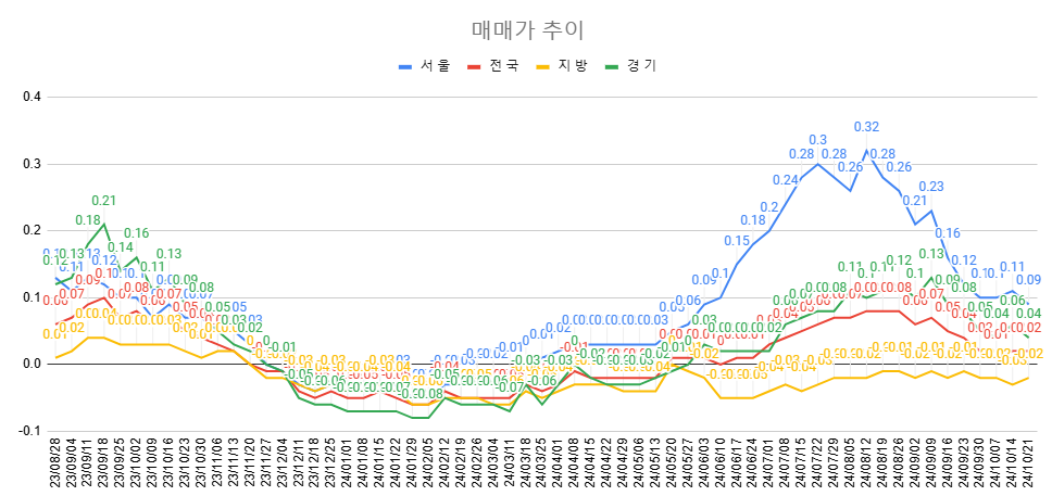 | [금요루틴] 10월 3주차 매매전세 동향 (한국부동산원 기준) (1) | 2024.10.18 |