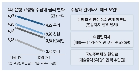 - 금리인하. 수수료 면제.. 주담대 환승 '쑥'