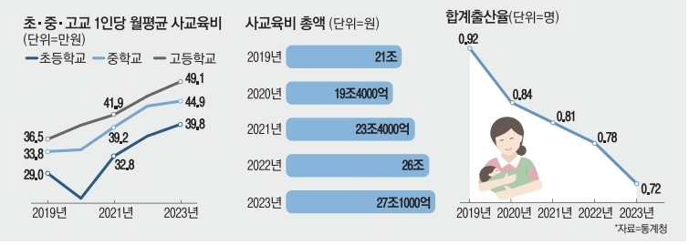 - 교육비 1% 오르니 출산율 0.02명 ↓.. 저출생 낳는 사교육 공화국