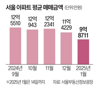 - 서울 아파트 평균매매가 10억 무너졌다