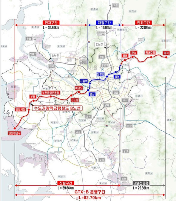 우선. 인천을 가는 GTX B 라인을 보겠습니다.