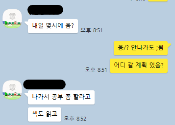 저녁에 집에 들어와 방에서 뭘 좀 하고 있는데, 메시지가 옵니다.