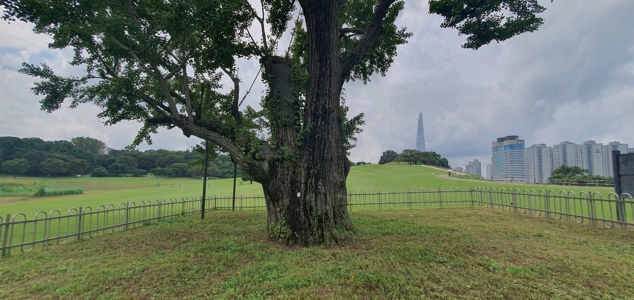 묘~~ 한 조화네요. 랜드마크 L 타워 옆, 보호수. 68년?? 에 지정되었는데 그때 530년이라니 .. 지금은 580년이 다 되어가는군요.