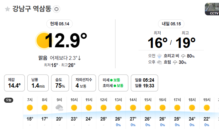오늘 낮기온이 26도까지 올라가는군요!