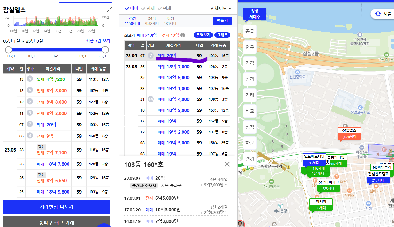 15.4억까지 떨어졌던 25평이 이제 20억을 돌파하고, 전고점까지 얼마 남지 않았습니다.