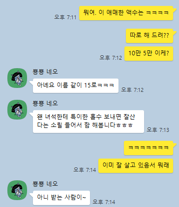 신기하게 15만원을 해달라고 하길래,