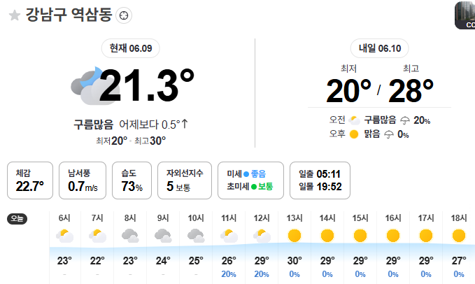오늘 아침 기온이 30도까지 올라가는군요.