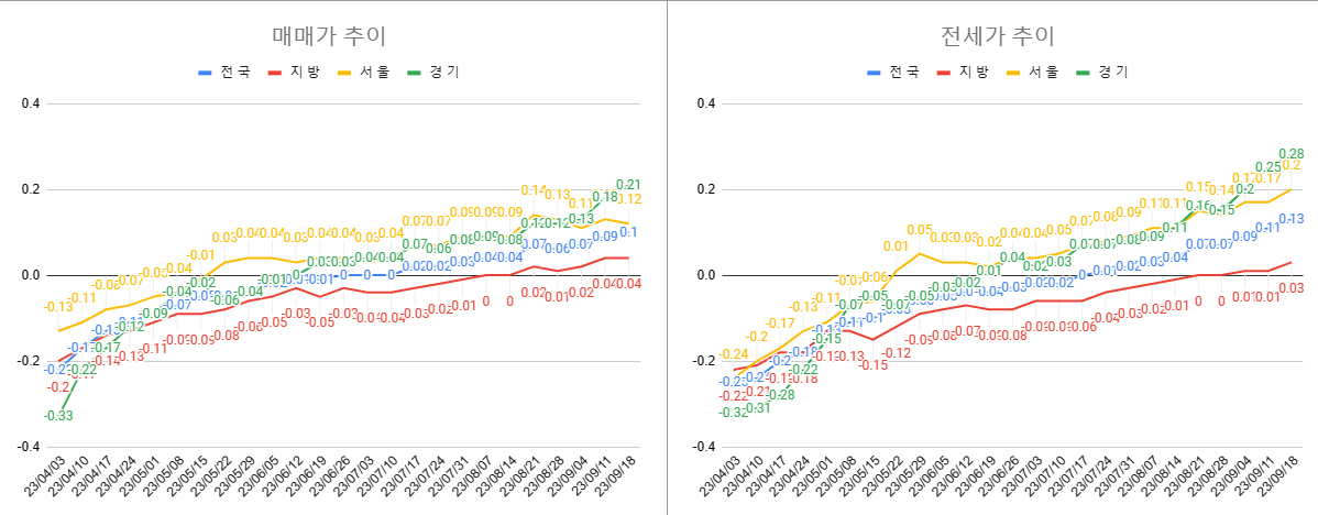 | [금요루틴] 9월 4주차 주간 아파트 매매전세동향 [한국부동산원 기준] (1) | 2023.09.29 |