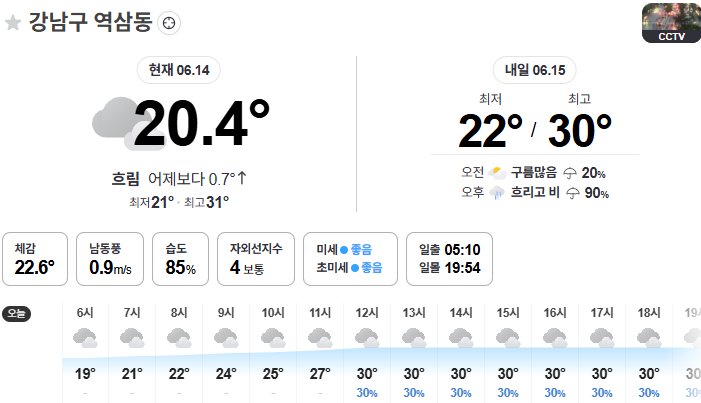 근데, 낮기온이 30도라니. 오늘은 왠지 좀 습하고 덥지 않을까.. 생각이 듭니다.