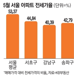 - "집값 상승, 전세가 못따라가" 강남3구 전세가율 40%로 뚝