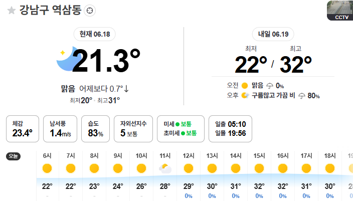 그나마 점심때부터.. 습도는 낮아지는 것 같아 다행이네요.