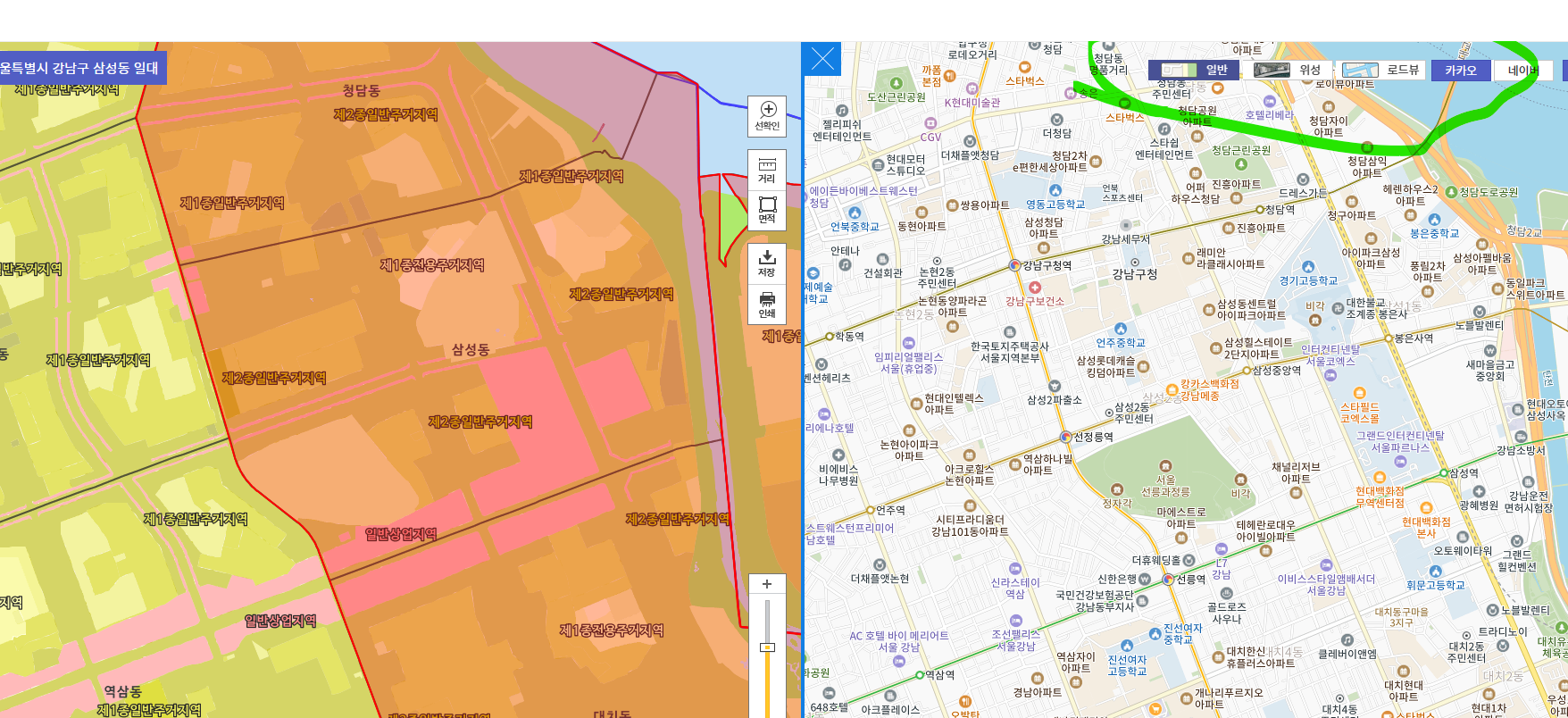 3. 그렇다면? 자 서울로 서울로, 강남으로 축적을 줄여 들어가 봅시다.