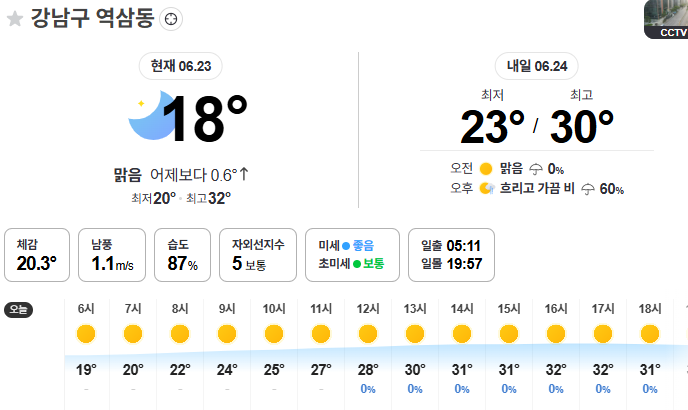 어제 오늘 날씨가 맑고 이번주 금요일까지는 비가 없네요.